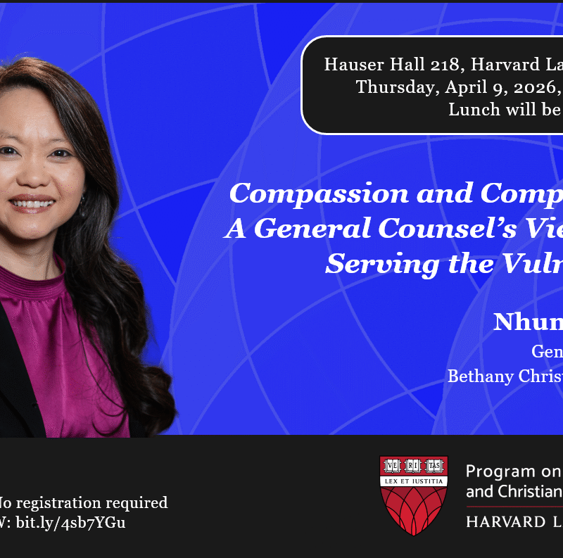 Join HLS alum, Chris Lee, J.D. ’06, Partner at Cleary Gottlieb, for a lunchtime conversation on thriving in faith while working in BigLaw. Mr. Lee…