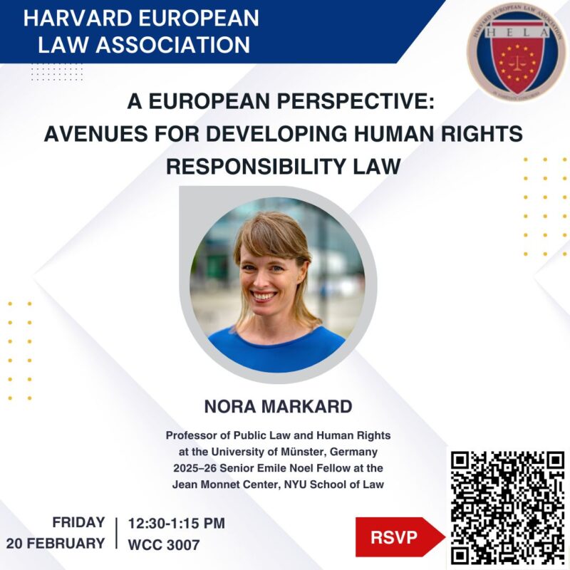 The Harvard European Law Association is pleased to host Dr. Amaryllis Verhoeven for a lunch talk on Monday, February 9, from 12:30 to 1:15 p.m. in…