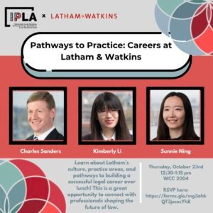 Join IPLA to learn about Latham’s culture, practice areas, and pathways to building a successful legal career over lunch! This is a great opportunity to…