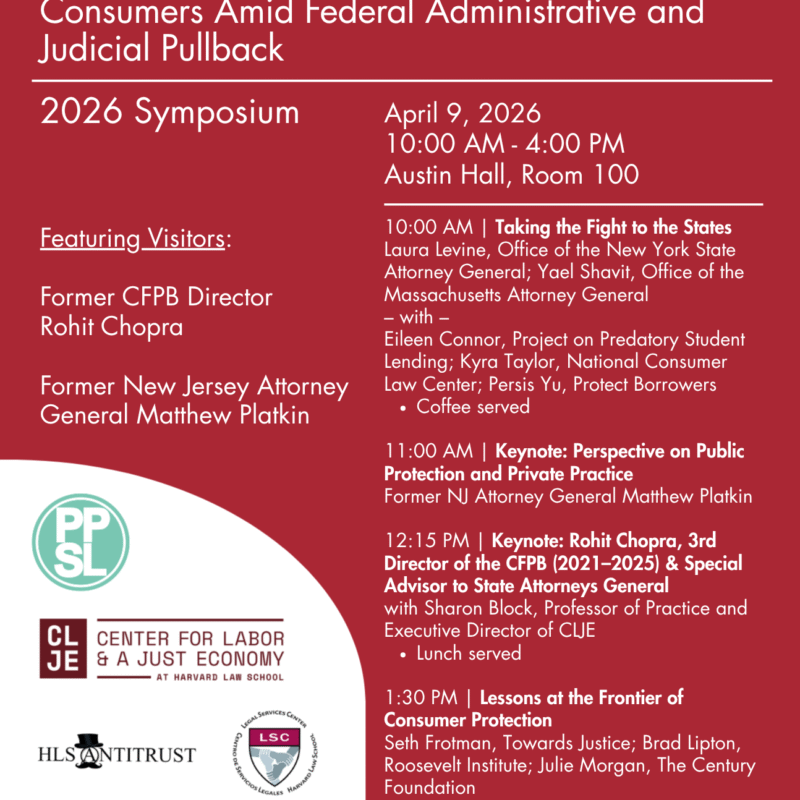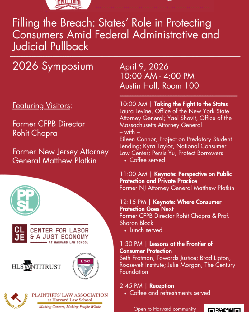 Please join the Harvard Journal on Legislation for our annual symposium, this year entitled Filling the Breach: States’ Role in Protecting Consumers Amid Federal Administrative…
