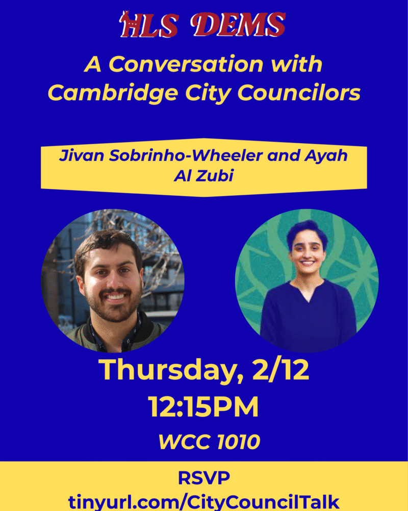 Hosted by Dems, ACS, MENALSA, First Class, SALSA, Lambda, and CRCL Hear from 2L and 3L Dems about navigating your 1L spring semester at HLS!…