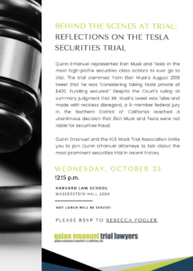 Quinn Emanuel represented Elon Musk and Tesla in the