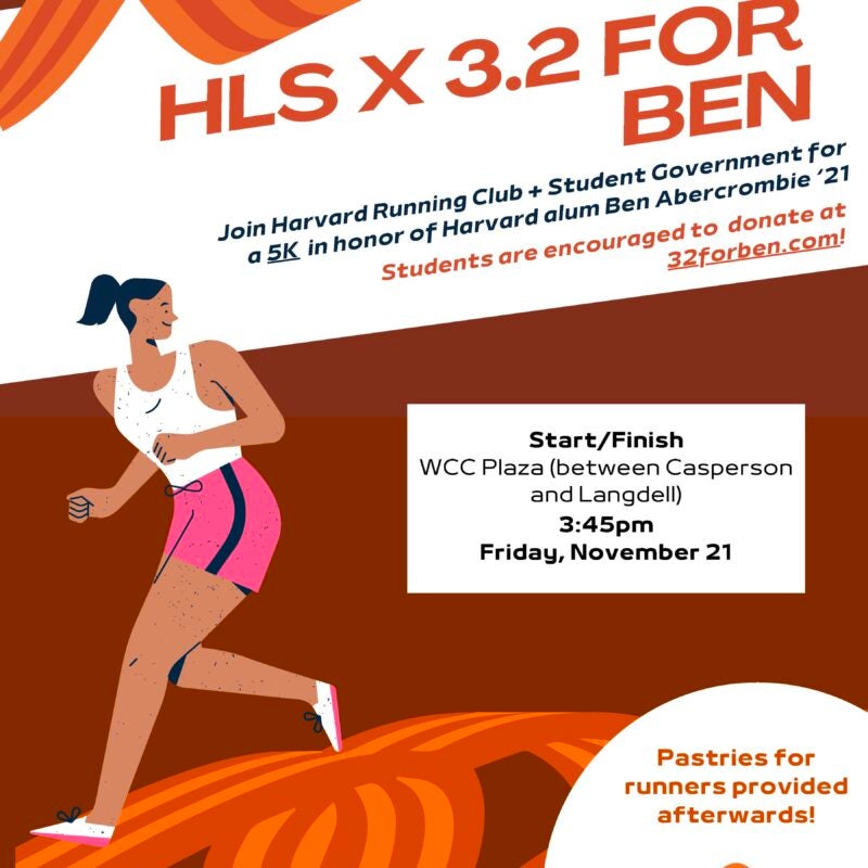 Join Harvard Law Run Club for a run at 6PM! We will be running 3 miles, leaving from outside the WCC between Casperson, Langdell, and…