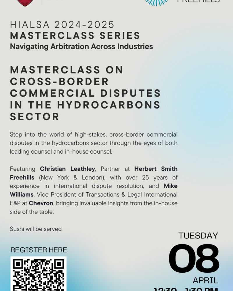 Join us for the third masterclass of HIALSA’s 2024-2025 Series: Navigating Arbitration Across Industries! This time, we are thrilled to welcome Rahim…