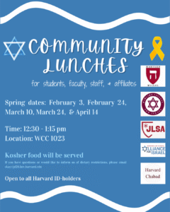 Join the Harvard Jewish Law Students Association for a community pizza lunch!…