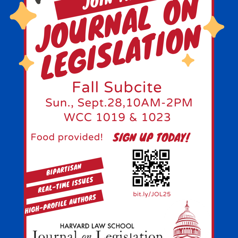 The Journal on Legislation is hosting fall subcite on Sunday, September 29 from 9:30 am to 1:30 pm in WCC 1010. Brunch will be provided.