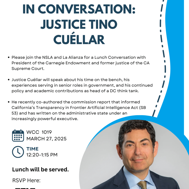La Alianza will host a panel discussion with BigLaw associates on the differences between corporate and litigation practices, as well as factors for students to…