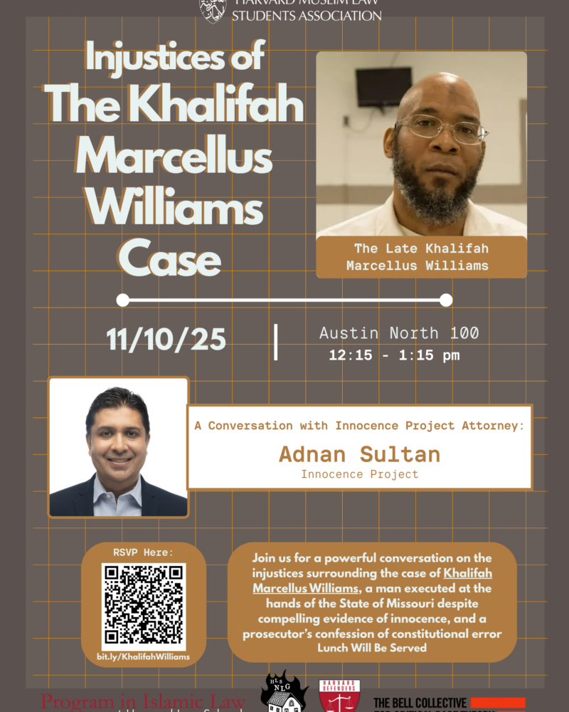 Join the Harvard Muslim Law Students Association for a powerful conversation with Shawn Barksdale and Larry Howerton, two formerly incarcerated advocates who have spent decades…