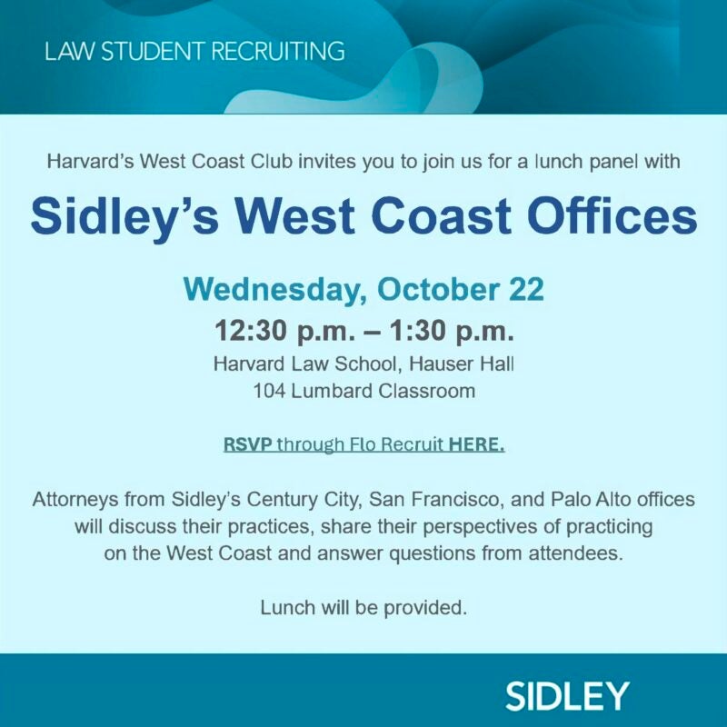 All 1Ls are invited to a lunch on Thursday, February 13th for a speaker panel and Q&A with Sidley Austin attorneys from Los Angeles, San…