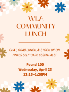 Join WLA for our final community lunch and stock up on finals self-care essentials!…