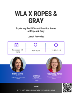 Please join us at 12:30 on 11/12/2025 in WCC 1019 to learn about practice areas at Ropes & Gray! RSVP here.