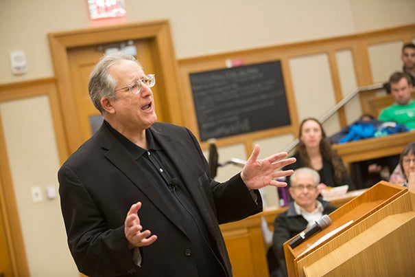 Laurence Tribe ’66, the Carl M. Loeb University Professor and Professor of Constitutional Law, who teaches at HLS, argued that Cruz is ineligible to hold the presidency, using what he called Cruz’s own strict interpretation of the Constitution.