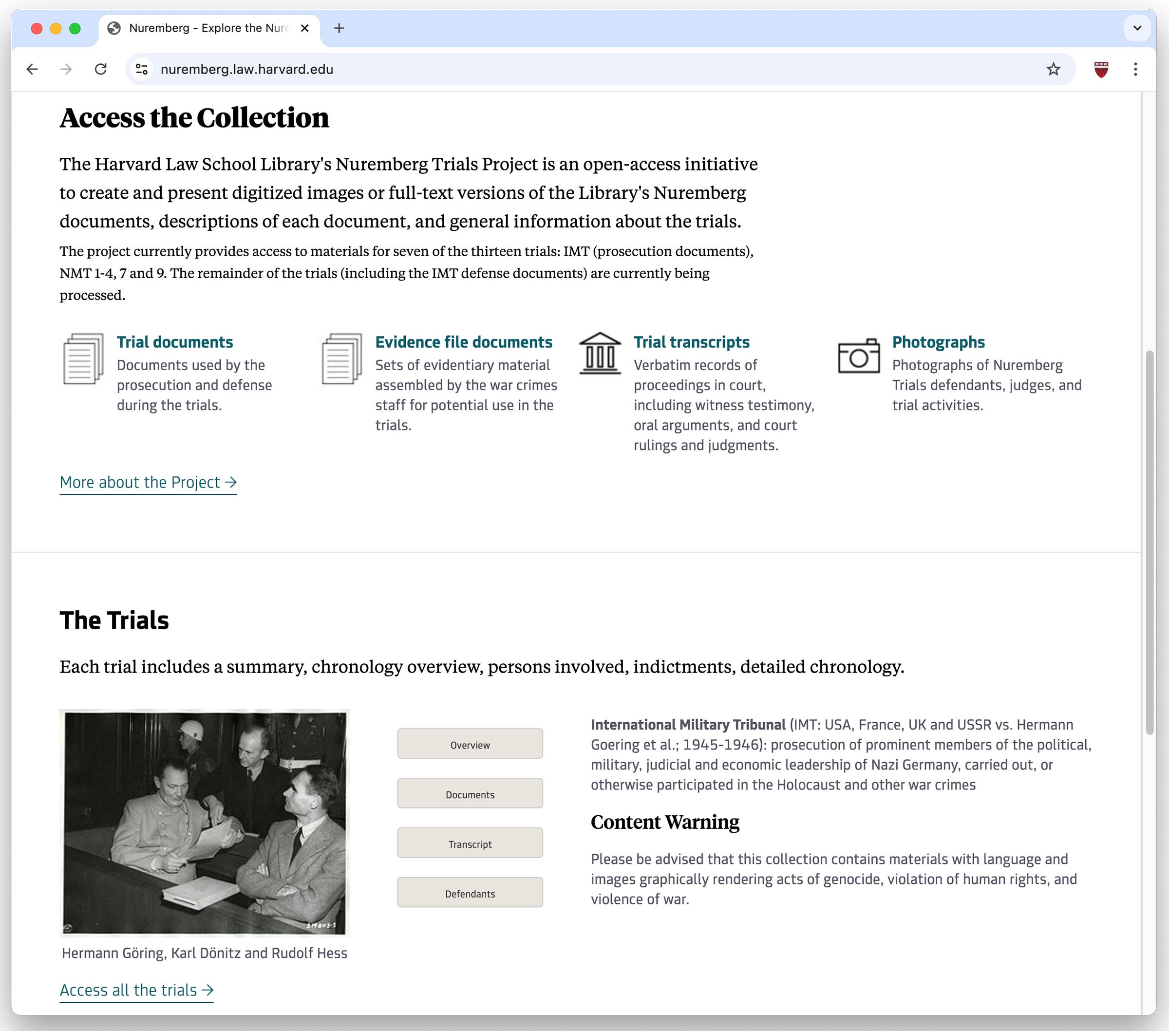 The library will continue to administer and manage the archive site with the goals of preserving the historical record and ensuring all members of the public have open access to the documents that catalogue Nazi atrocities and memorialize this landmark event in the history of international law.