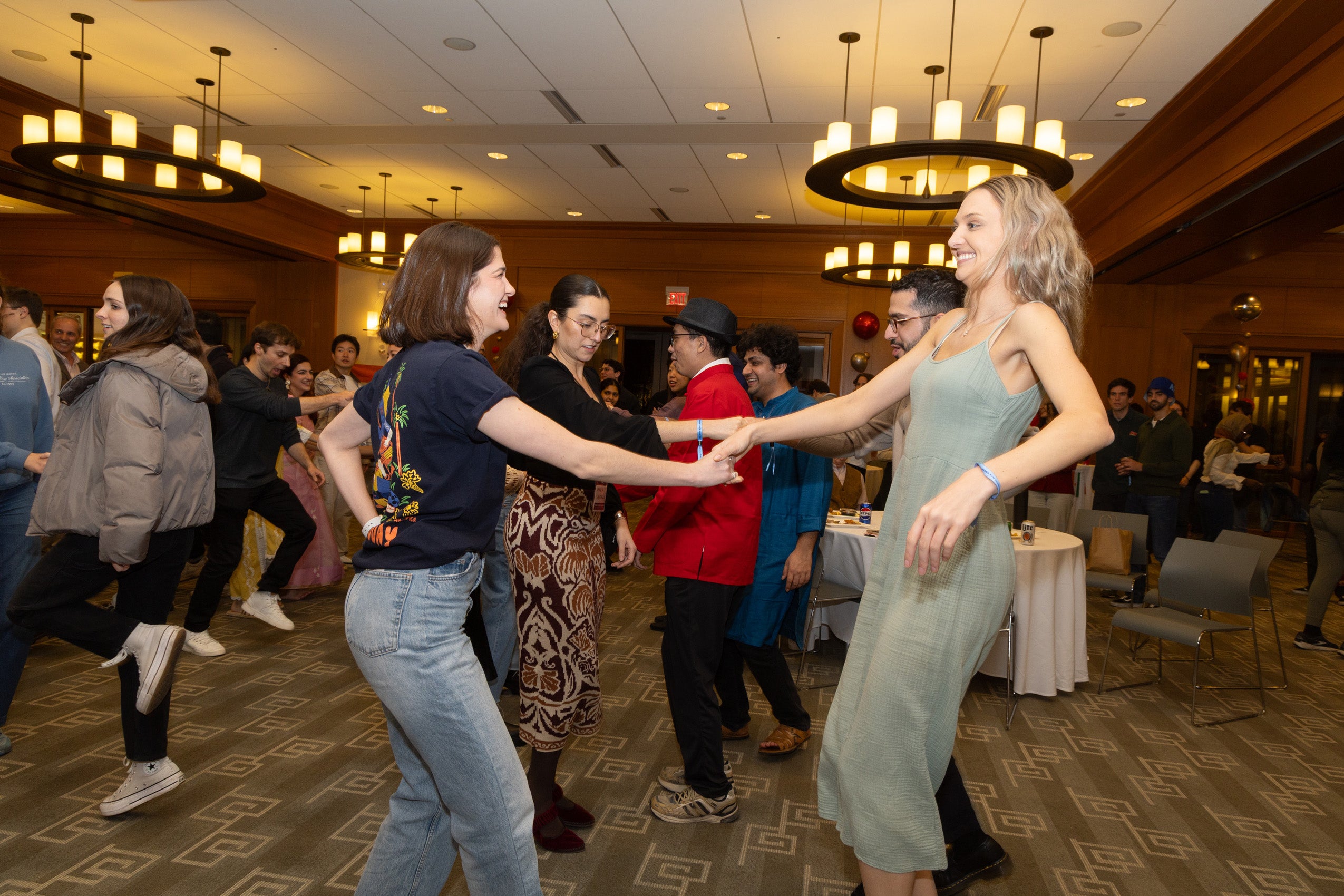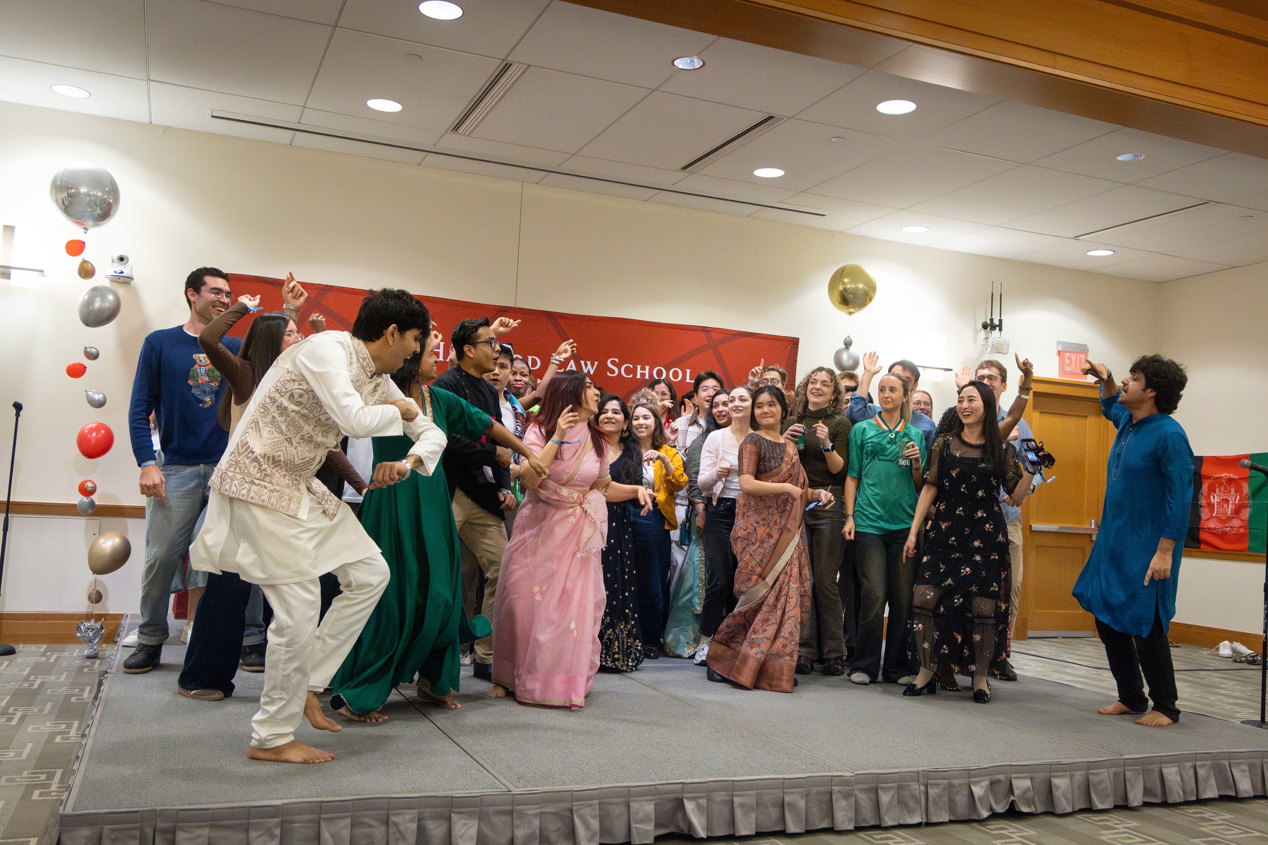 A Bollywood dance, an interactive Irish step dance demonstration, singing, and instrumental music were all part of the international extravaganza hosted by the Harvard Law School LL.M. Class of 2026 on March 8. This year’s International Party, held in Wasserstein Hall, welcomed a wide array of students, faculty, and staff to celebrate cuisine, culture, and music from around the world.