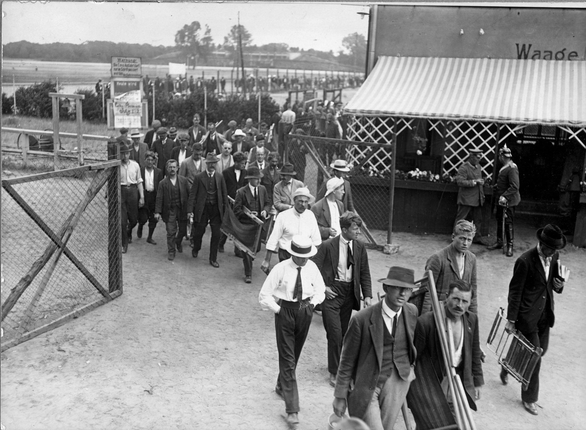 Ruhleben is a unique lens for viewing the fate of civilian prisoners. Following a declaration of war on Aug. 4, 1914, negotiations between Germany and Great Britain regarding an all-for-all trade of civilians quickly failed. On Nov. 6, about 4,000 British men aged 17 to 55—tourists, businessmen, expatriates and merchant seamen—were arrested and sent to Ruhleben. (Women, children and the elderly were exempt.) By February 1915, all other male Commonwealth civilians in Germany were detained, and Ruhleben’s wartime population peaked at 4,273.