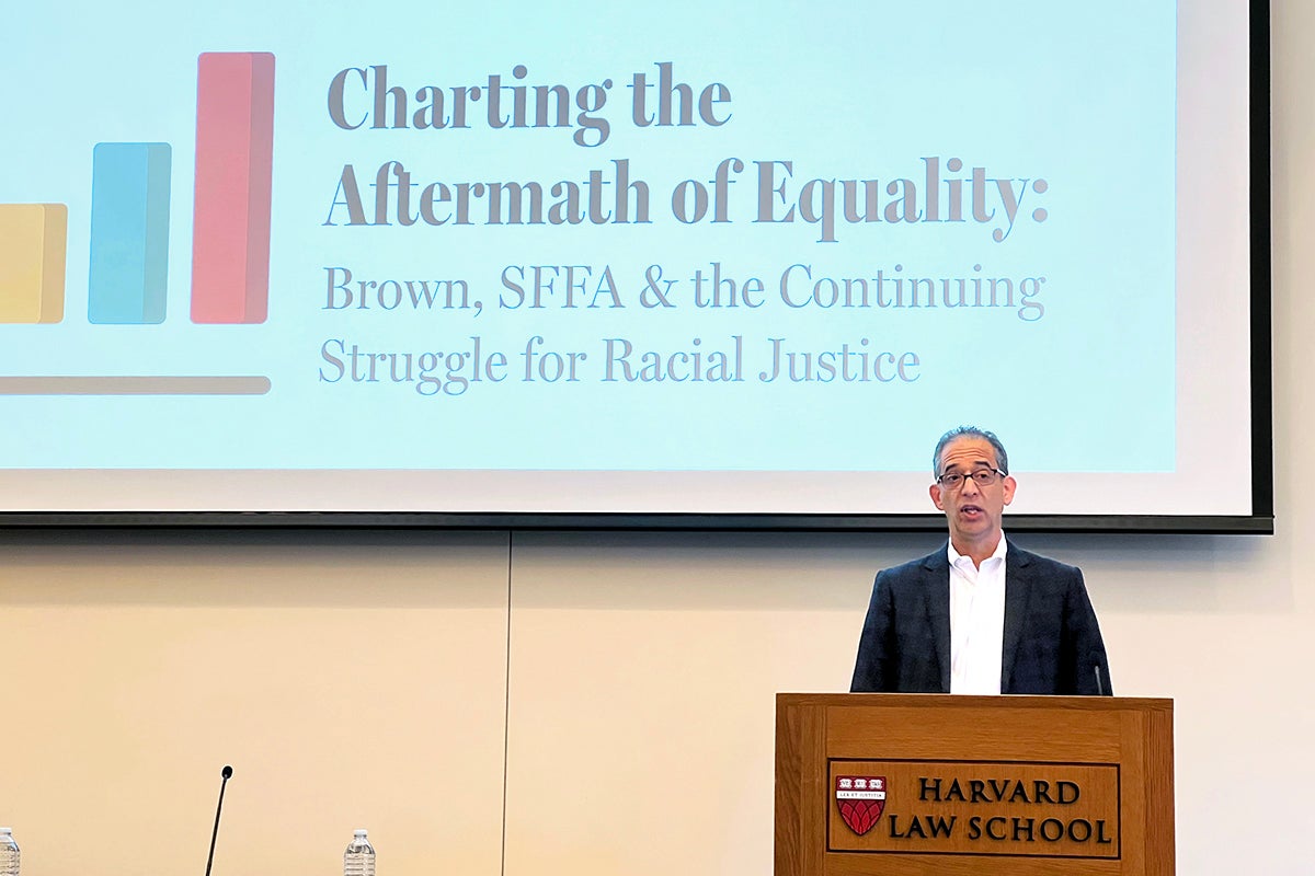 Her comments came during a day-long series of discussions and presentations at Harvard Law School titled, “Charting the Aftermath of Equality: Brown, SFFA & the Continuing Struggle for Racial Justice.” The April 11 gathering marked the inaugural Belinda Sutton Symposium, an annual lecture and conference series honoring Belinda Sutton, a woman who was enslaved by Isaac Royall Jr., whose 1781 bequest to Harvard College funded a professorship that helped to establish Harvard Law in 1817.