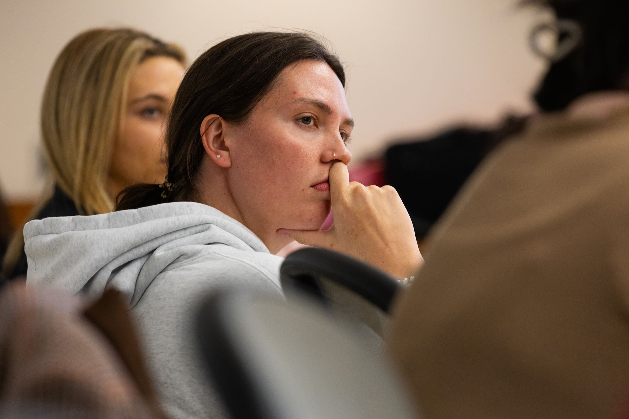 Abby Elder ’25, who hopes to continue exploring her passions for and building expertise in negotiation and alternative dispute resolution after law school, says she was attracted to Miller’s course last year because it promised a foundation for understanding and reducing division and facilitating difficult dialogues. She wasn’t disappointed.