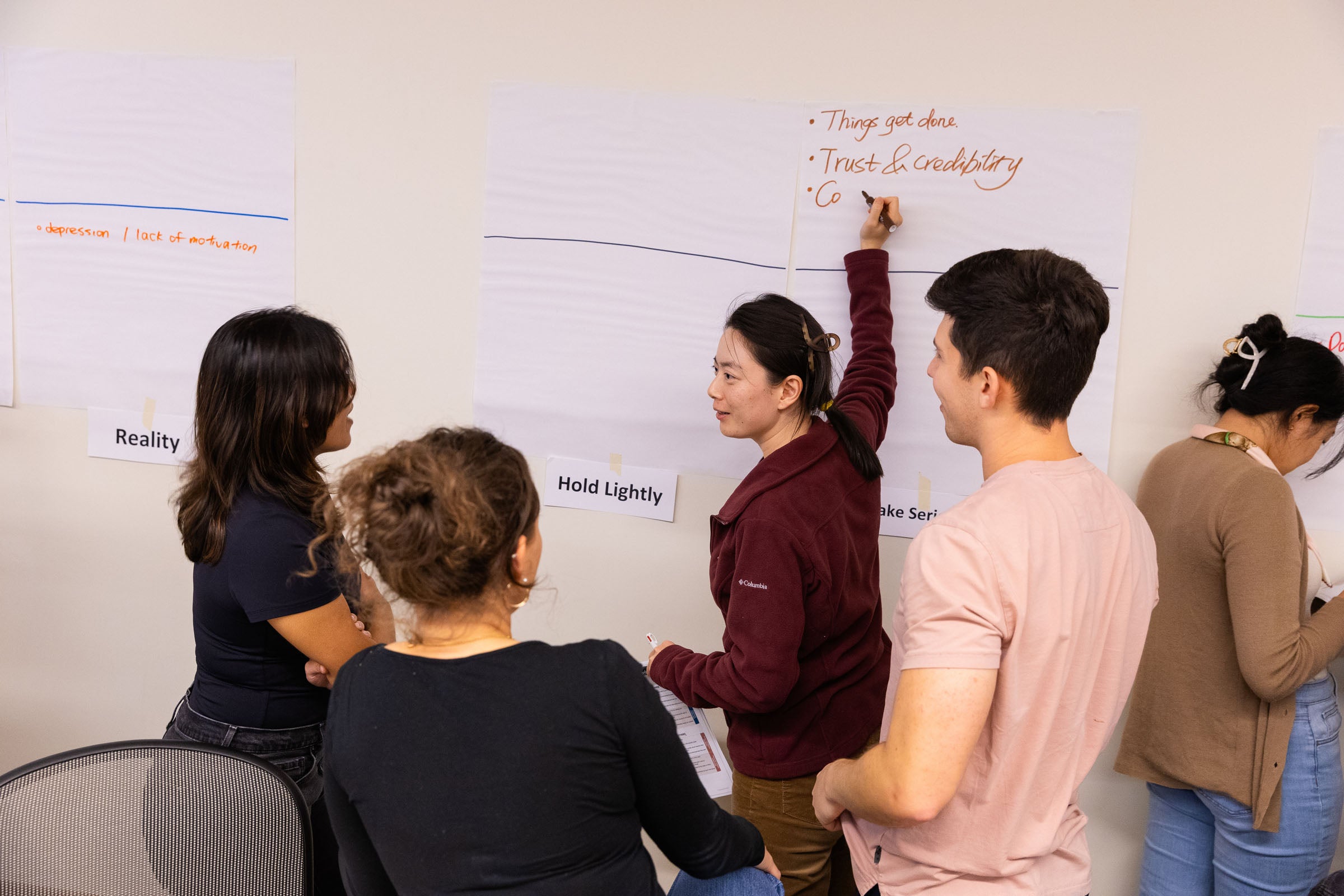 Miller’s course is highly interactive, with each class featuring a focused lecture followed by small group discussions, during which students collaborate to “map” a set of polarities, analyzing the benefits and overuses associated with each of the opposite poles, and then brainstorming ways to reap the benefits of both poles to arrive at an integrated “third way.”