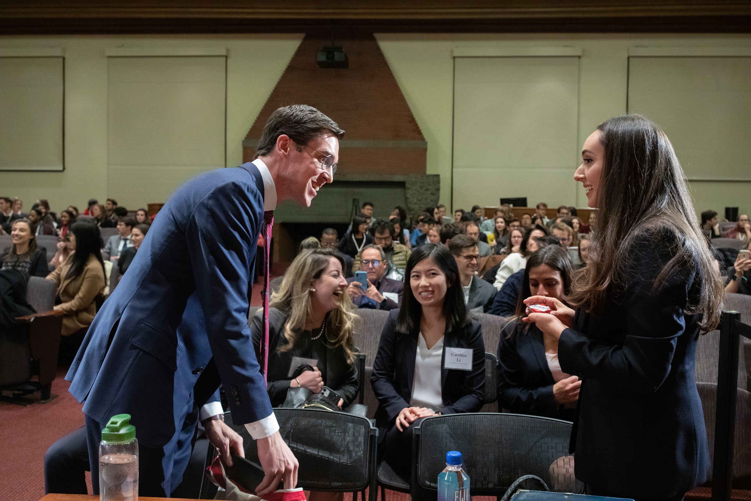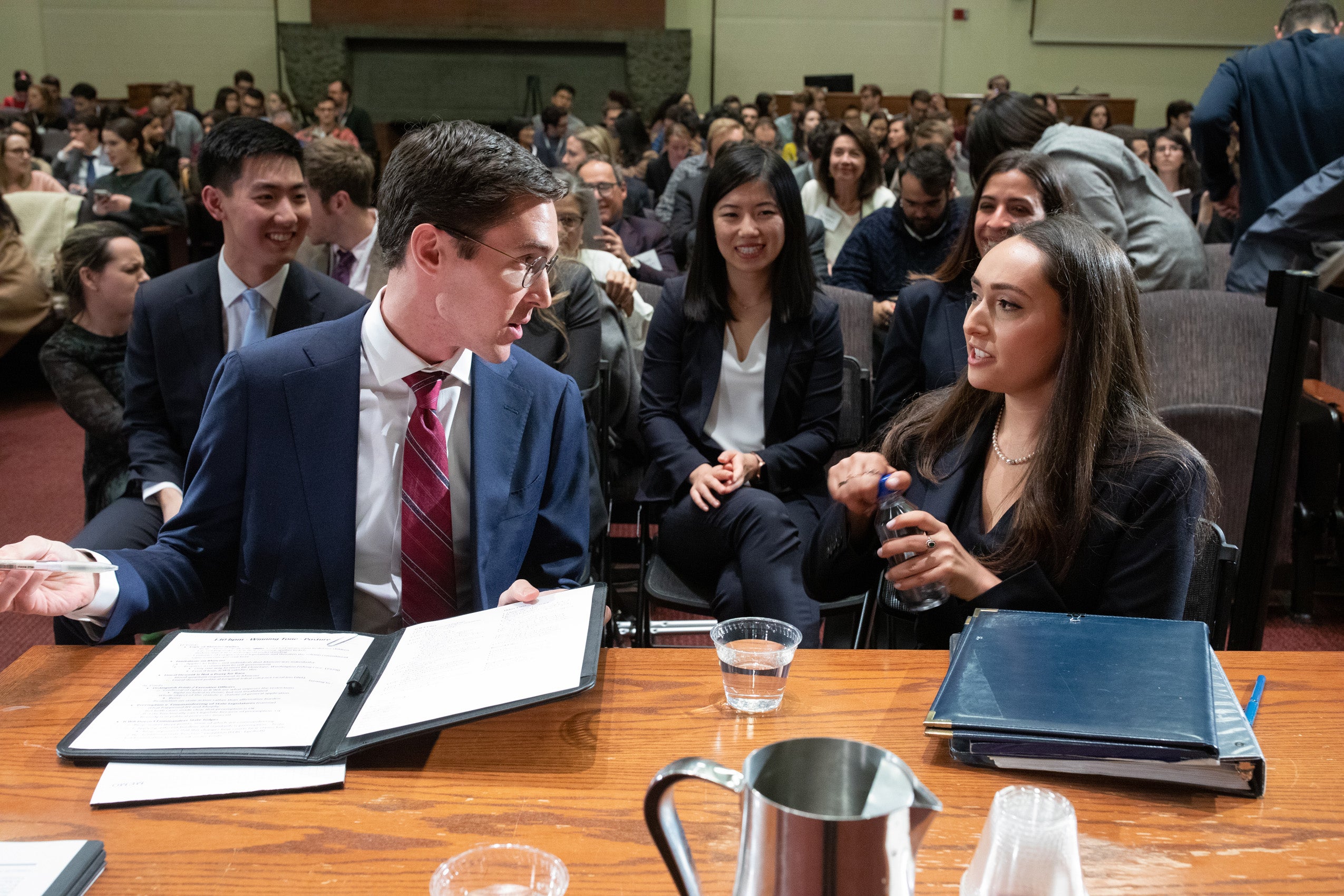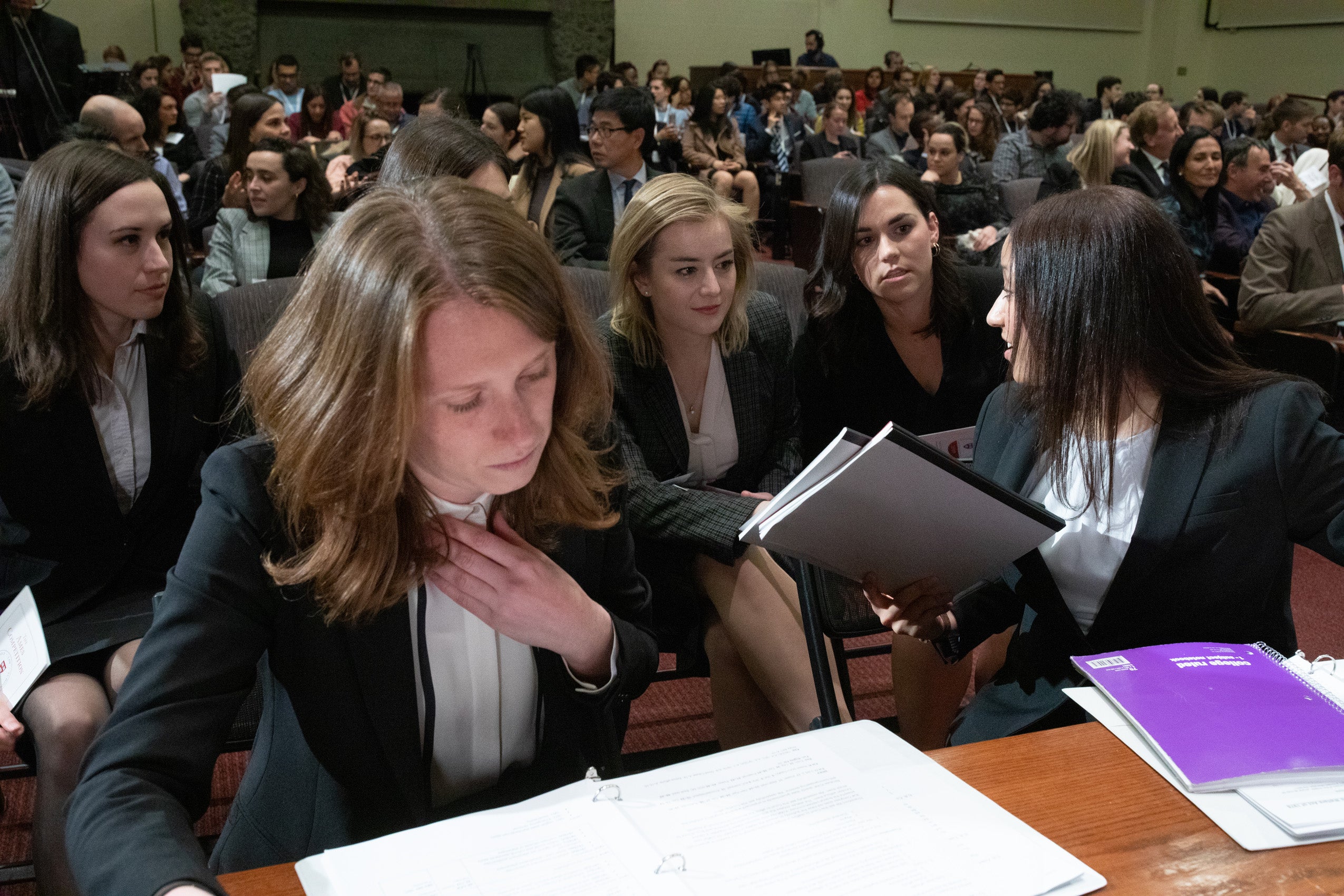One of the most anticipated events of the year, the competition—the culmination of a two-year process which begins during the 2L year in qualifying rounds—draws hundreds of spectators to the Ames Courtroom as two teams of six 3Ls argue a hypothetical case before an illustrious panel of distinguished jurists.