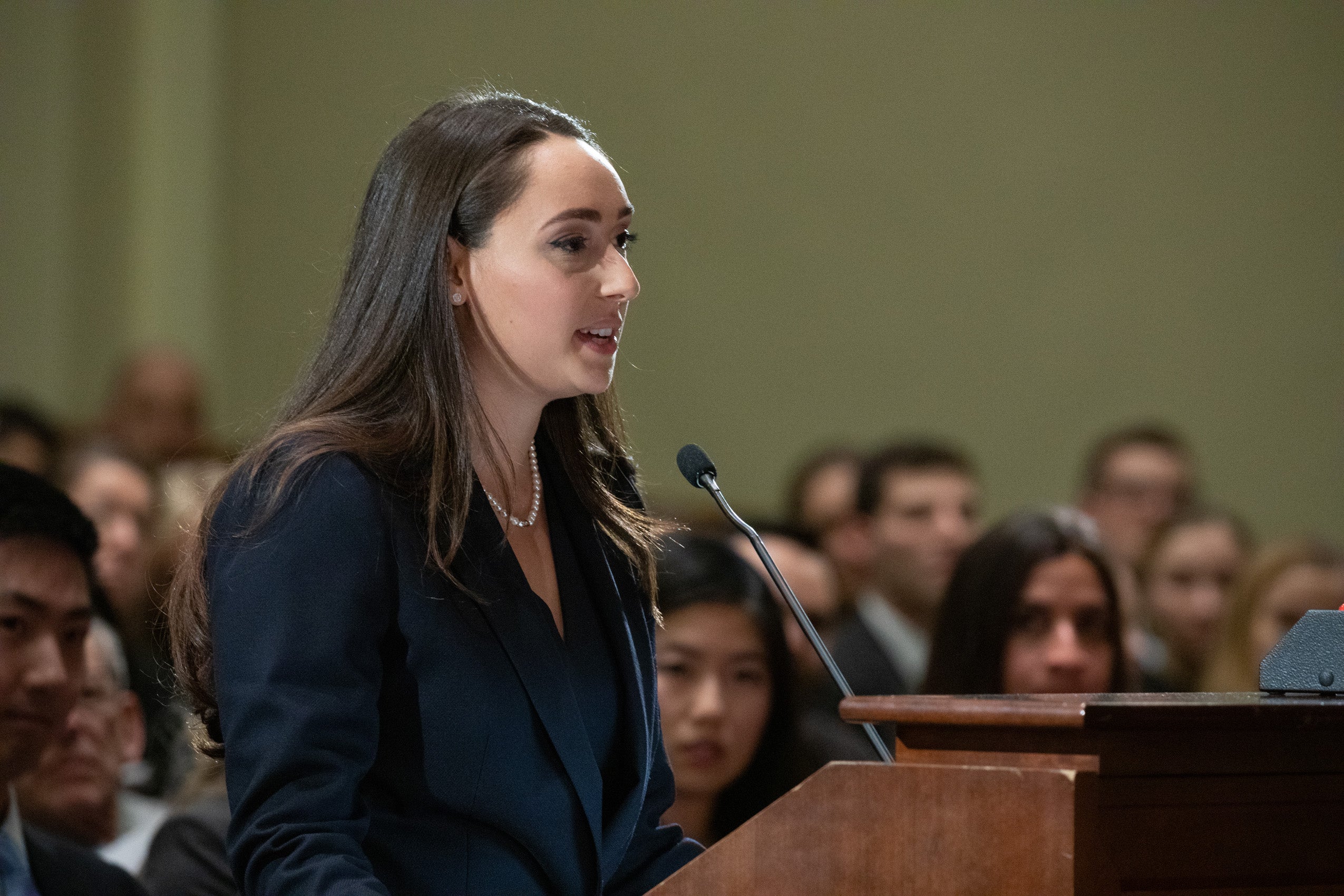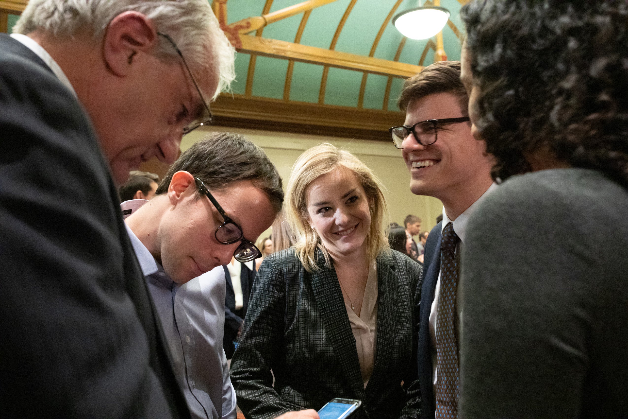 In a historic first, this year the first all-female team won. The Patricia Roberts Harris Memorial Team—which represent the respondents and included Charlotte Butash, Kelsey Fraser (oralist), Melanie Fontes (oralist), Hilary Hurd, Kate Peiffer, and Alicia Alvero Koski—was recognized as “Best Overall Team.” Kelsey Fraser was awarded “Best Oralist,” and the judges awarded “Best Brief” to the petitioners, the Janet Wood Reno Memorial Team. While an all-female team competed in 2016, this year marks the first time since the competition was founded in 1911 that an all-female team has won.