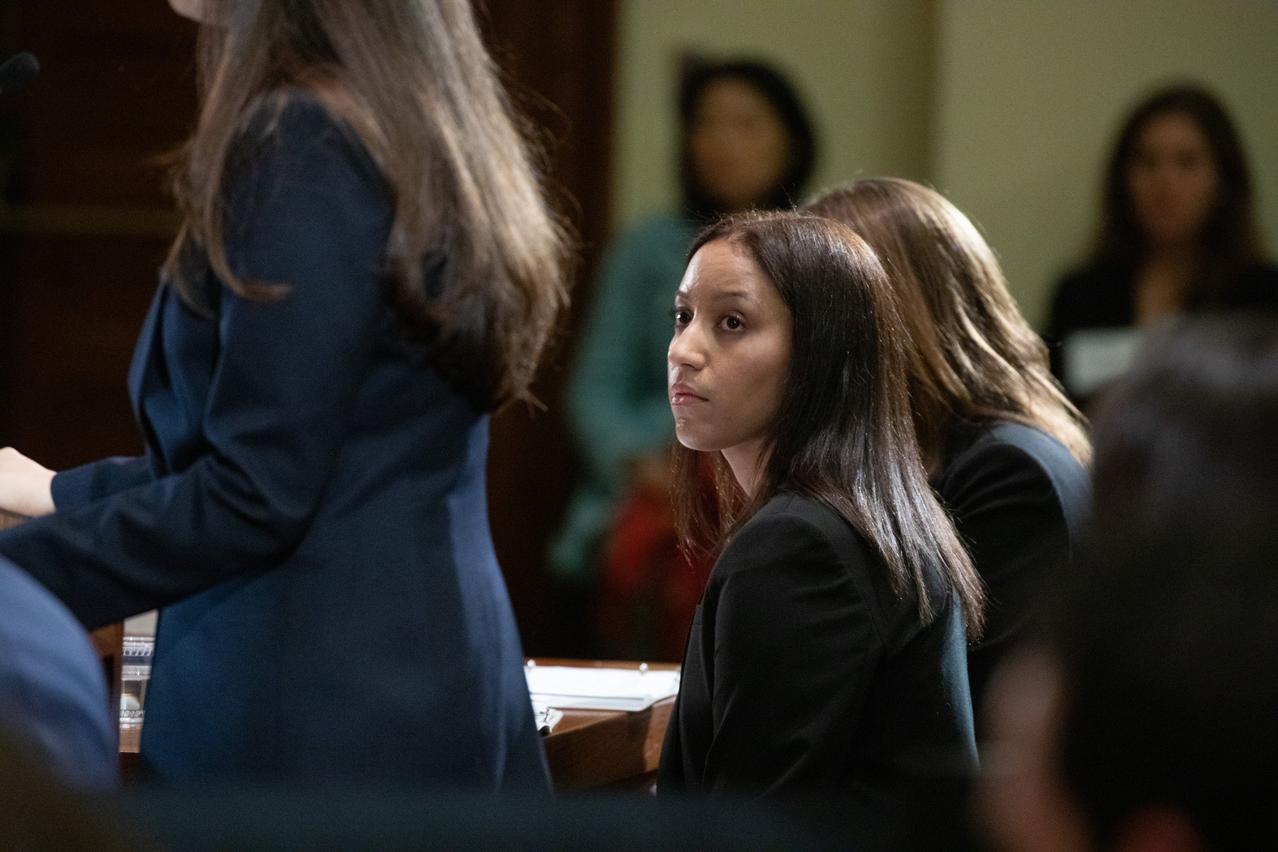 For several minutes the courtroom remained silent as team members and others assisted Gilbert-Lurie. Garland, visibly relieved when the student quickly recovered, quipped: “I withdraw the question.”