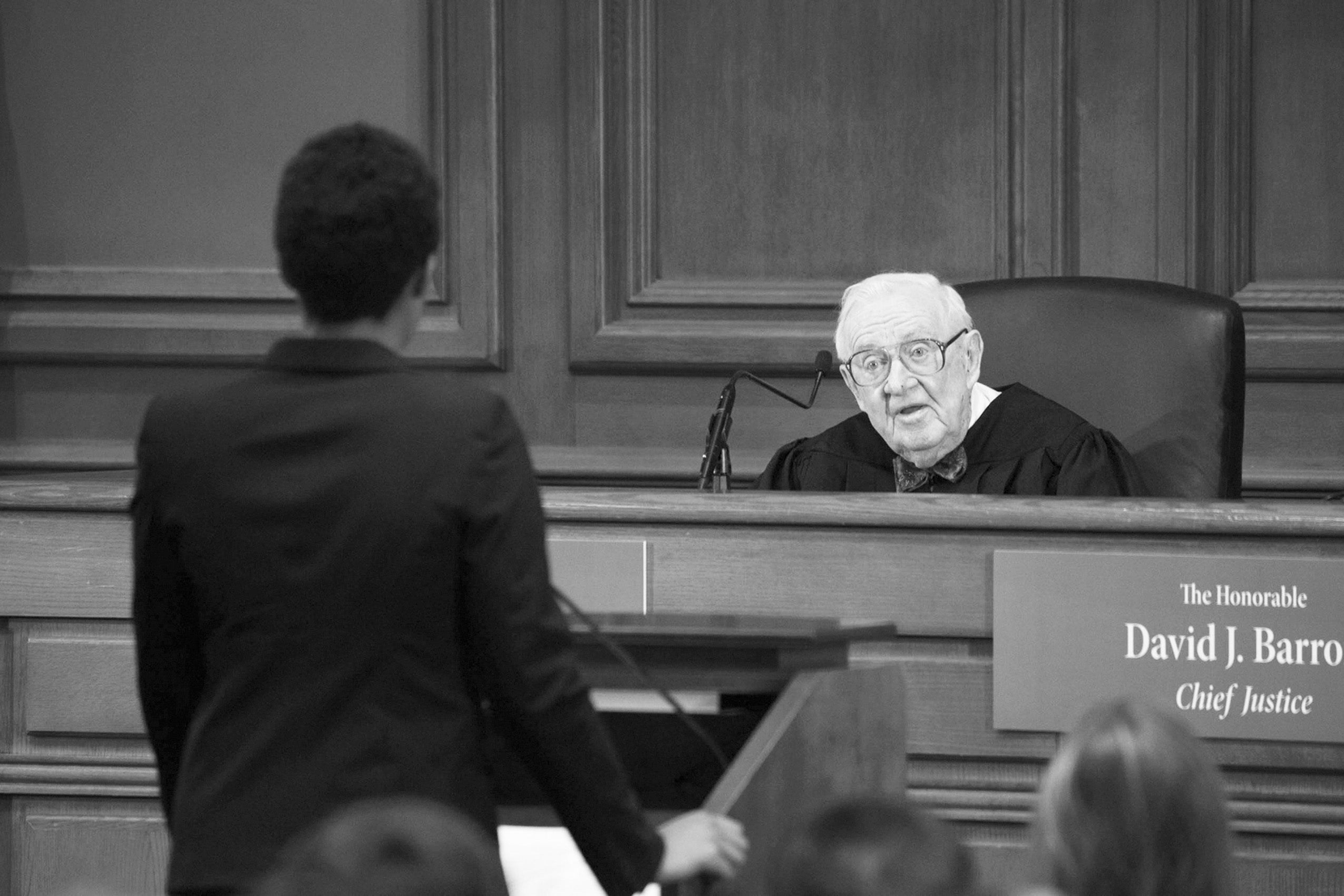 Although arguments in the U.S. Supreme Court are not video-recorded, you can watch many of its justices questioning oralists and presiding over cases—within the State of Ames. Visit Harvard Law School’s archive of video recordings of the final rounds of the Ames Moot Court Competition. In addition to many lower court judges, you will find 17 SCOTUS justices, including Thurgood Marshall (who first presided in 1974, the first year for which there is video); John G. Roberts Jr. ’79, chief justice of the United States; and most recently Sonia Sotomayor. (The dates of their appearances captured on video are included in the slideshow.)